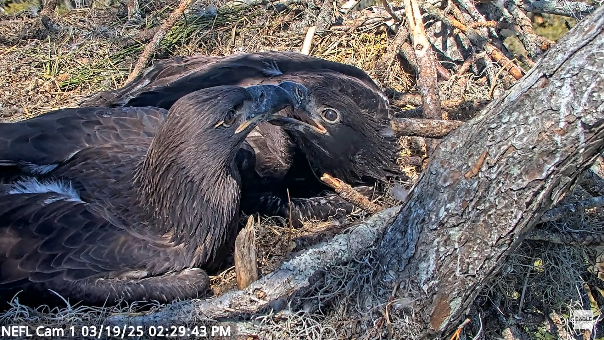 This is a wild eagle nest and anything can happen. While we hope that all eaglets hatched in this nest will grow up healthy and successfully fledge each season, things like sibling rivalry, predators, natural disaster as well as territorial disputes can affect this eagle family and may be difficult to watch.